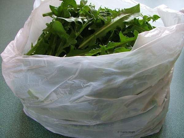 About Dandelion Greens – Pick a Bag Full. In the spring of the year, dandelion greens are found everywhere you look. It’s one of the first edible weeds that you can eat from the blossom (head) to the root. It’s a simple, wild green that's easy to prepare and can be used in many ways. Everything from tea to sautéing the roots. To get started, go find your dandelion patch. First, wrap your hand around the dandelion greens and make your first cut at the base of the plant. I use sharp kitchen scissors and cut the leaves enough to fill a plastic shopping bag.